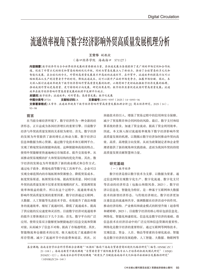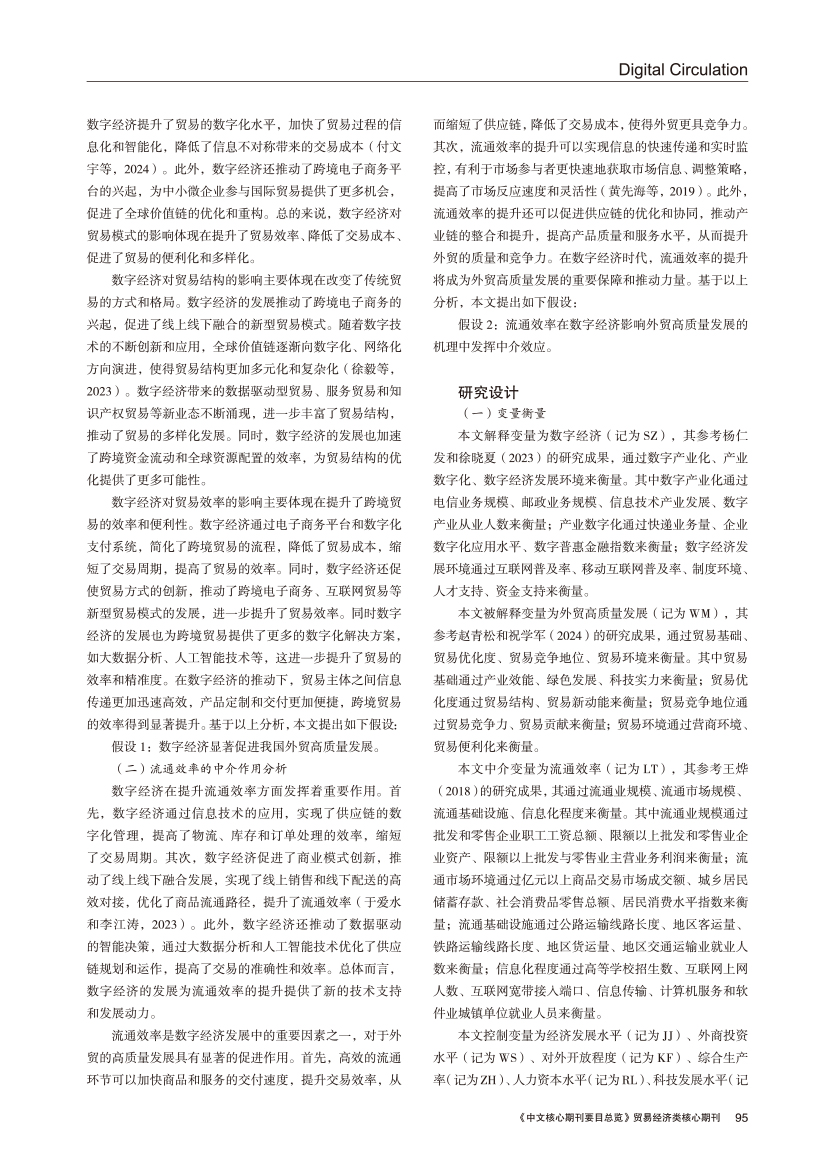 | 流通效率视角下数字经济影响外贸高质量发展机理分析 |