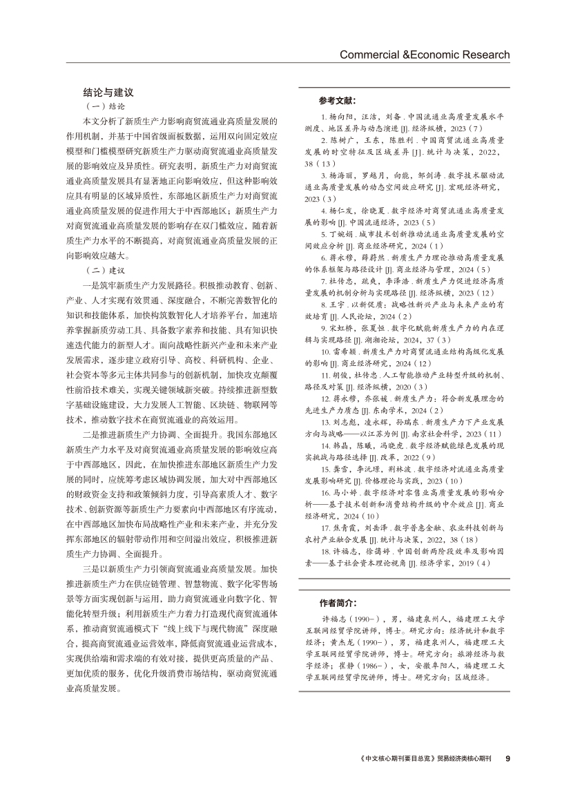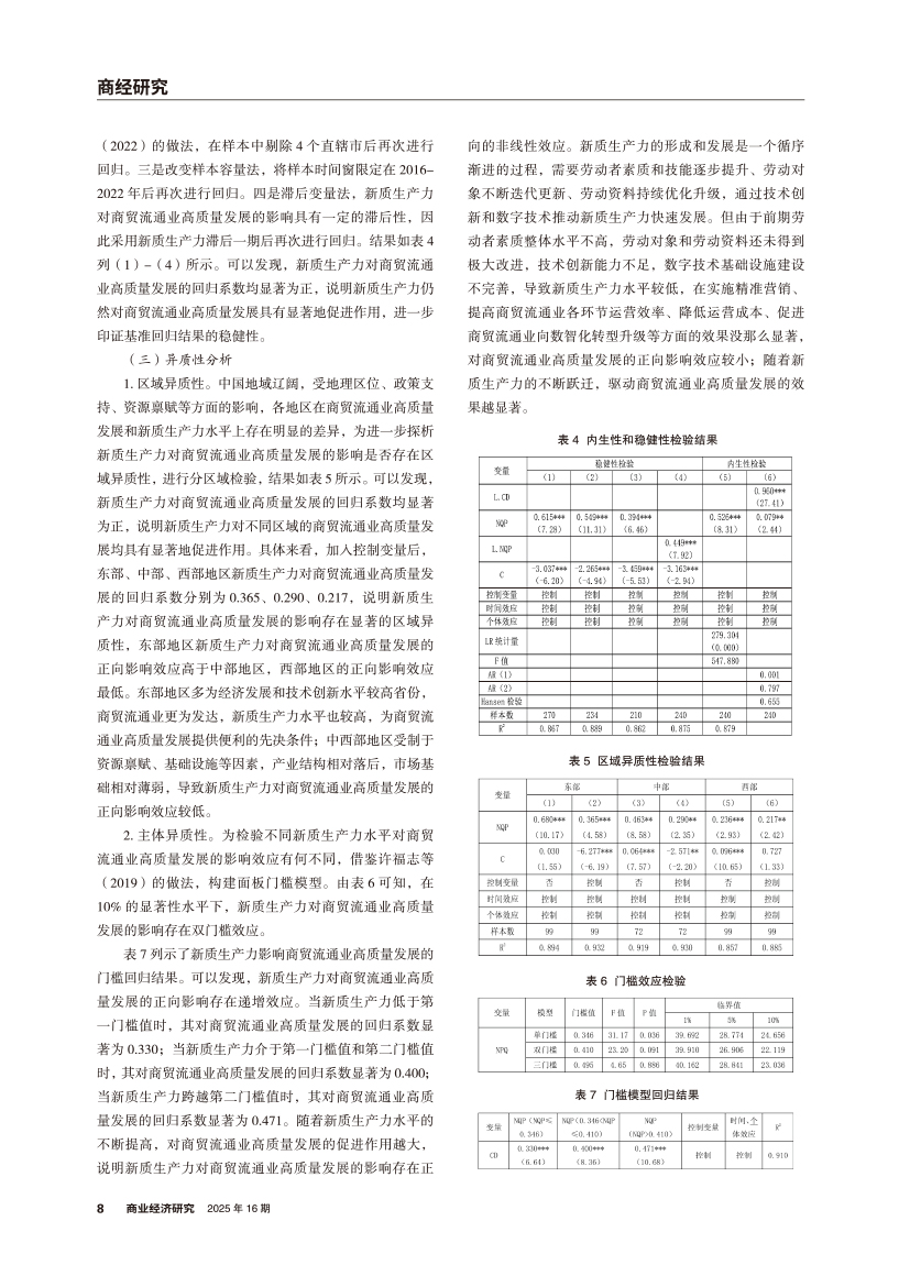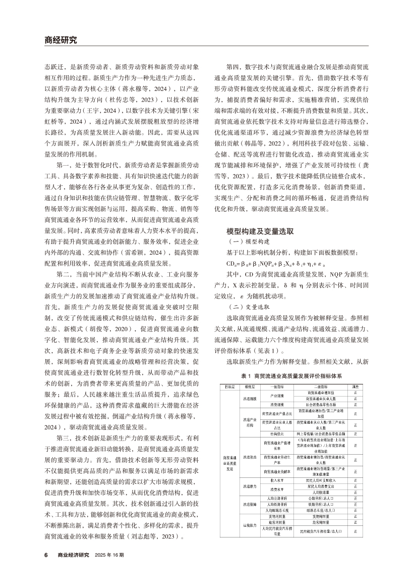 | 新质生产力对商贸流通业高质量发展的影响效应及异质性研究 |