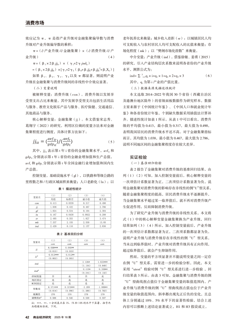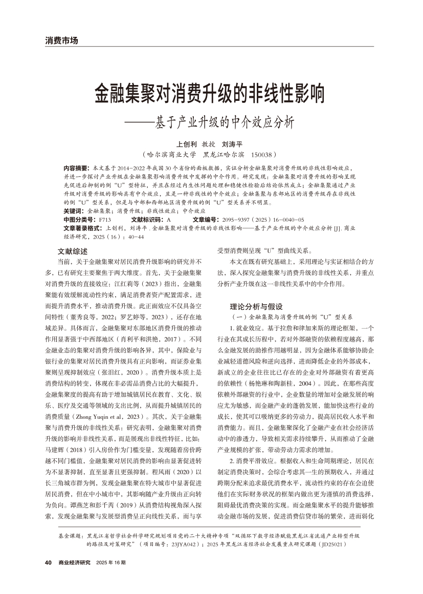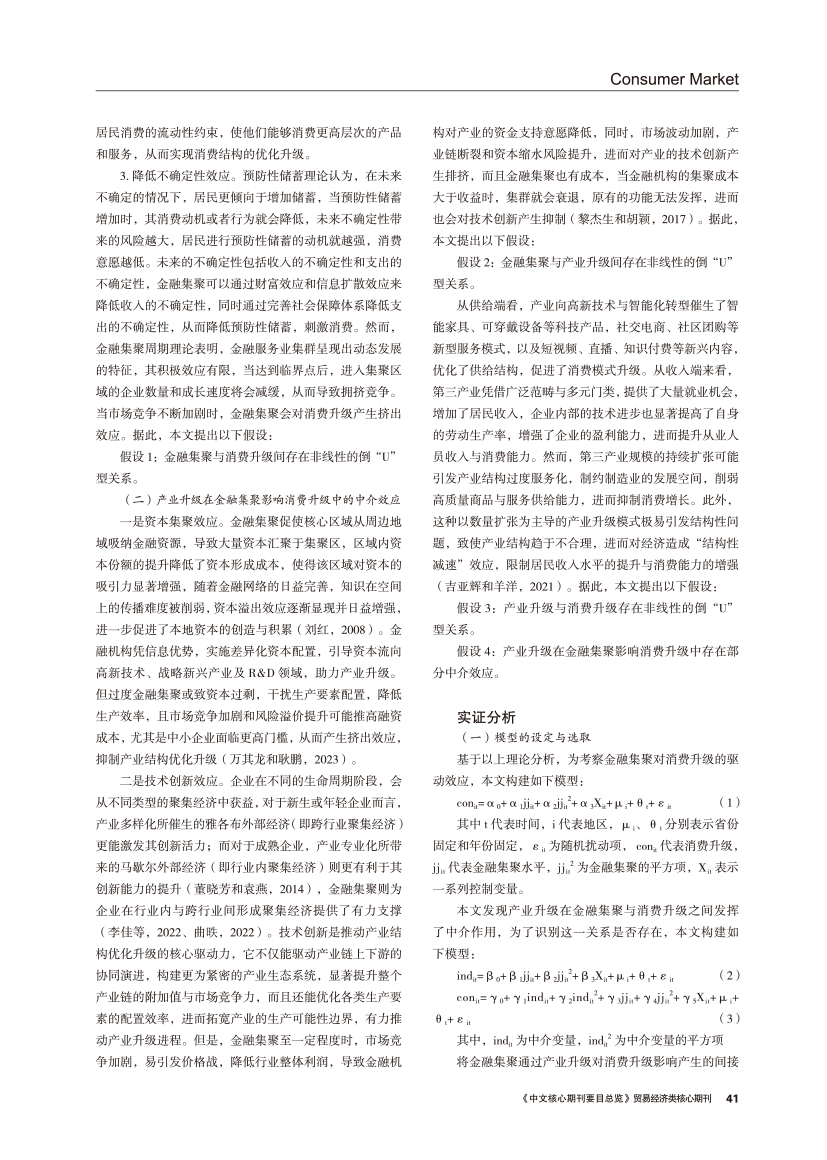 | 金融集聚对消费升级的非线性影响 ——基于产业升级的中介效应分析 |