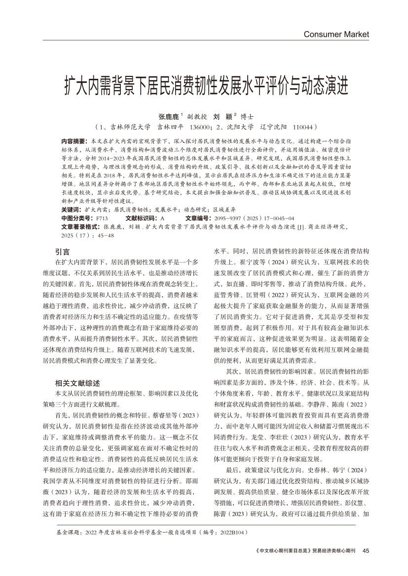 | 扩大内需背景下居民消费韧性发展水平评价与动态演进 |