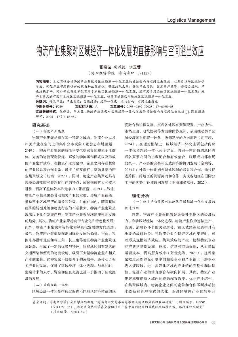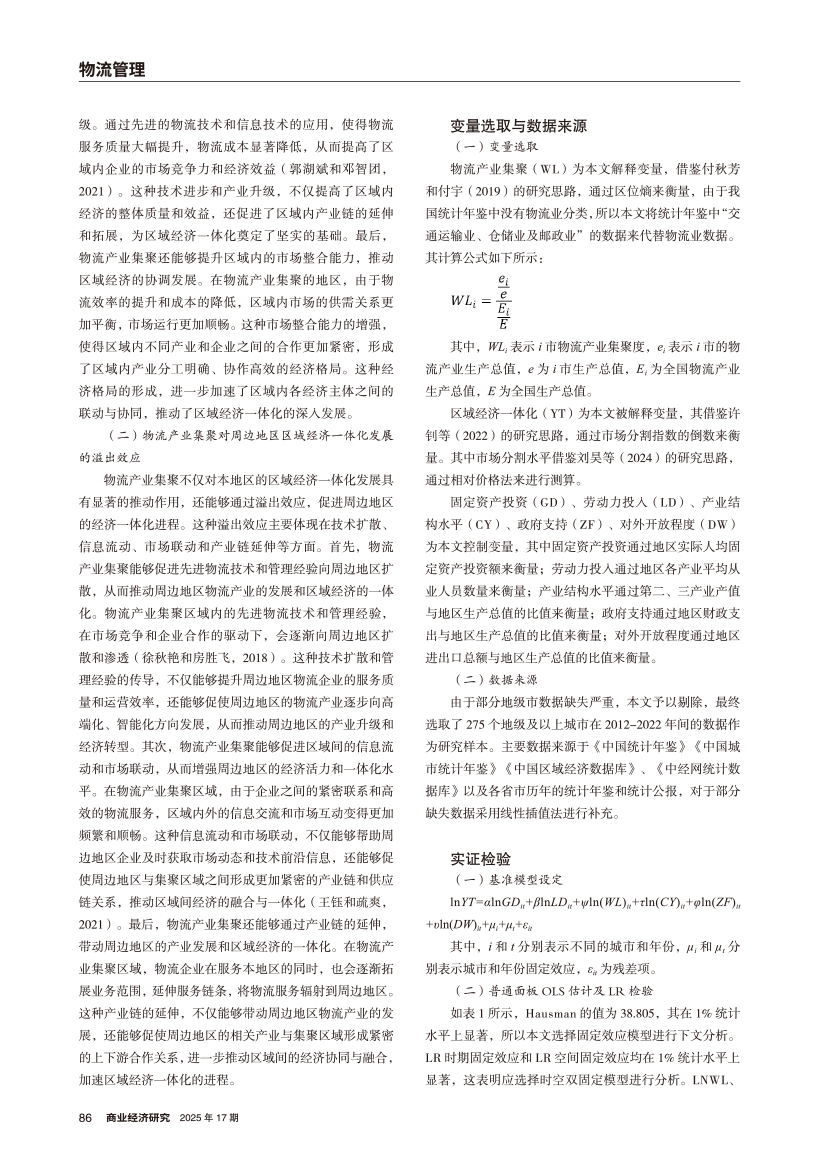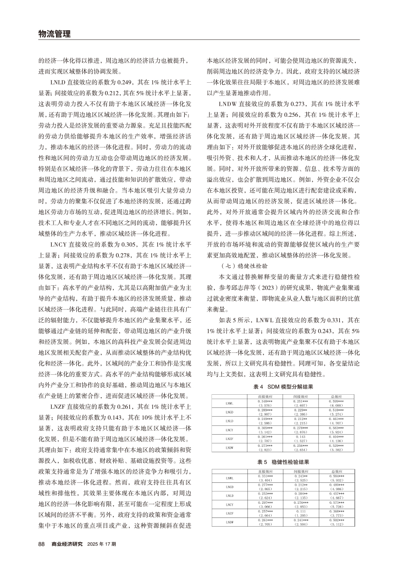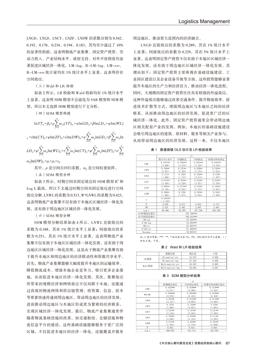 | 物流产业集聚对区域经济一体化发展的直接影响与空间溢出效应物流产业集聚对区域经济一体化发展的直接影响与空间溢出效应 |