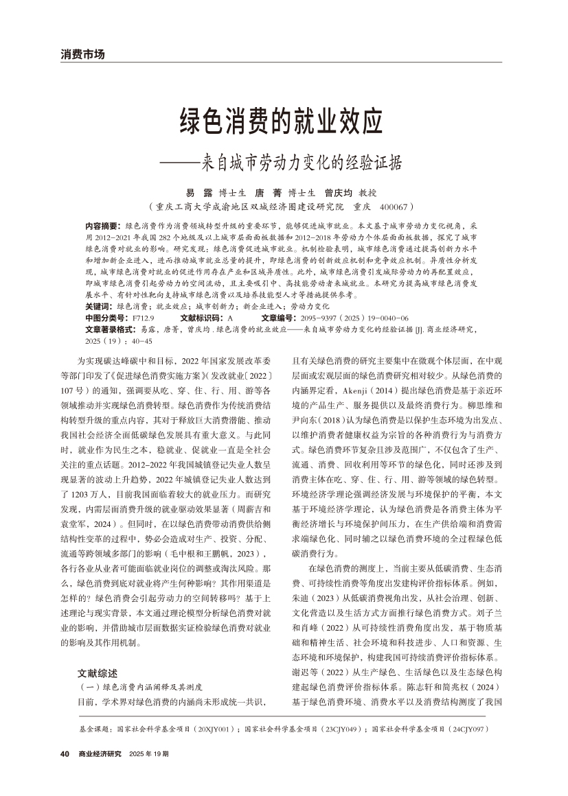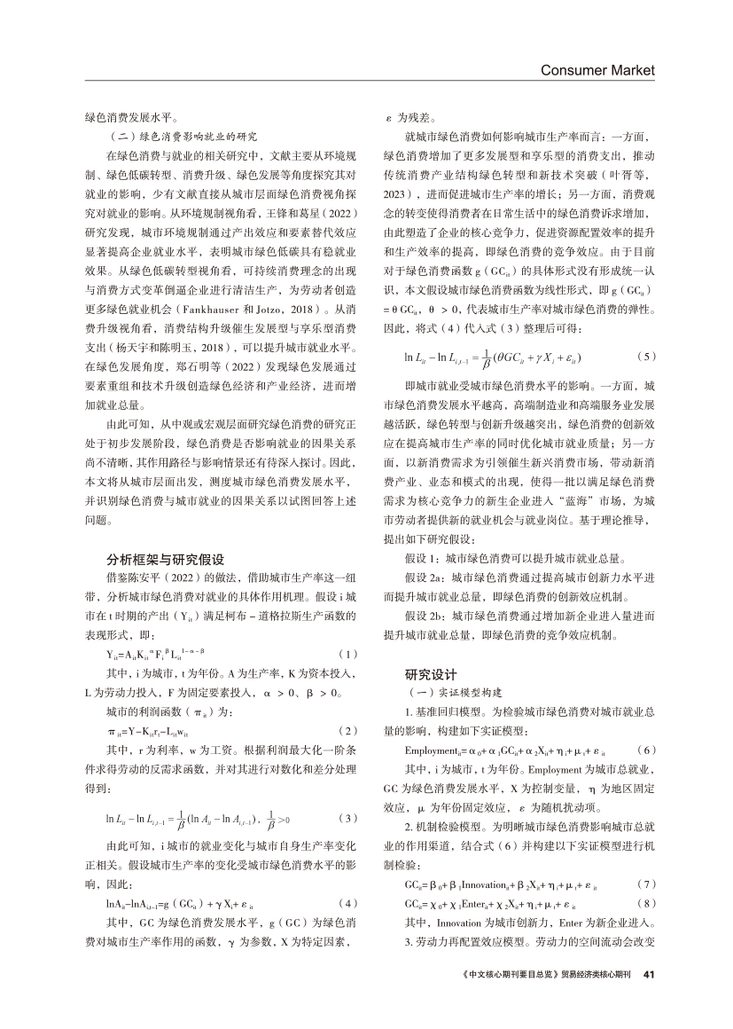| 绿色消费的就业效应 ——来自城市劳动力变化的经验证据 |