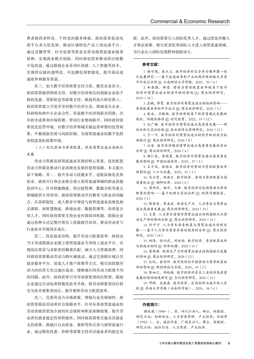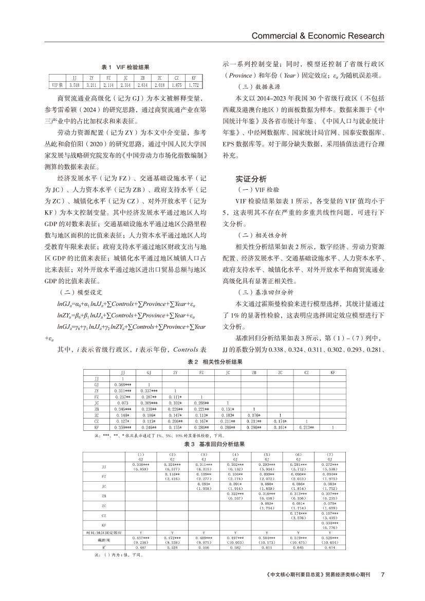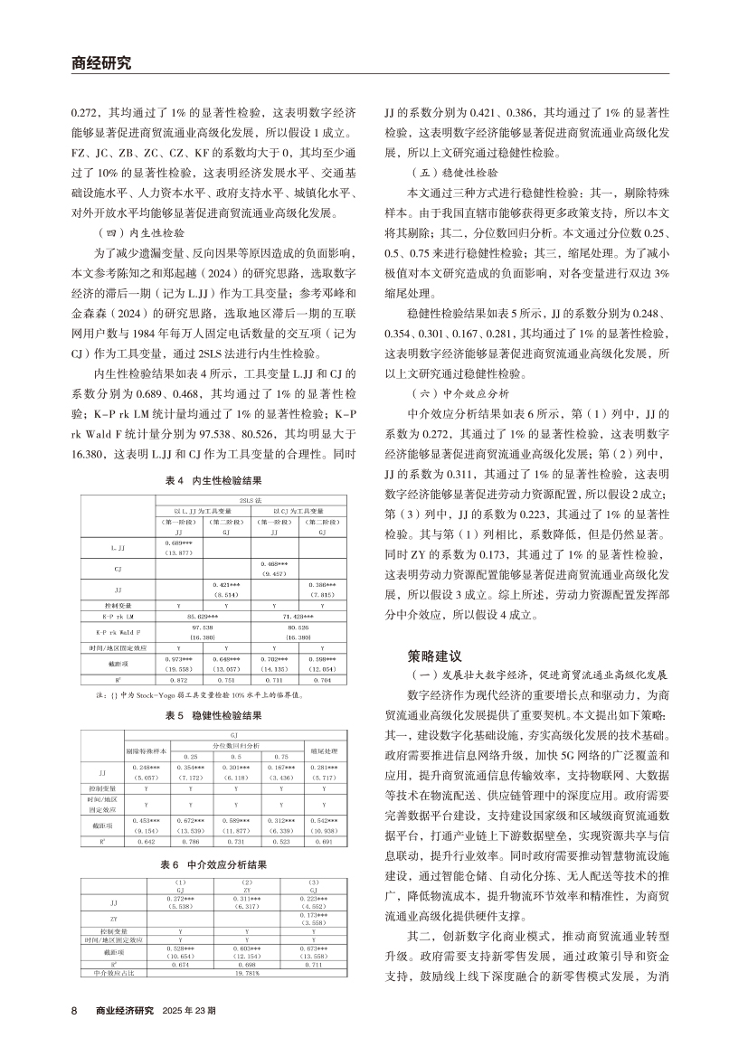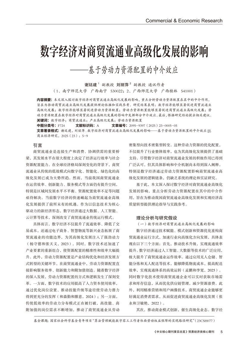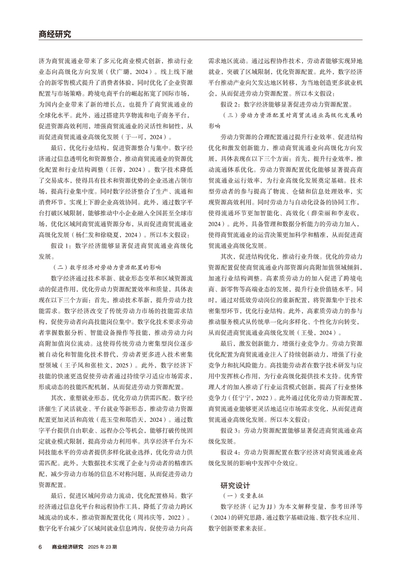 | 数字经济对商贸流通业高级化发展的影响 ——基于劳动力资源配置的中介效应 |
