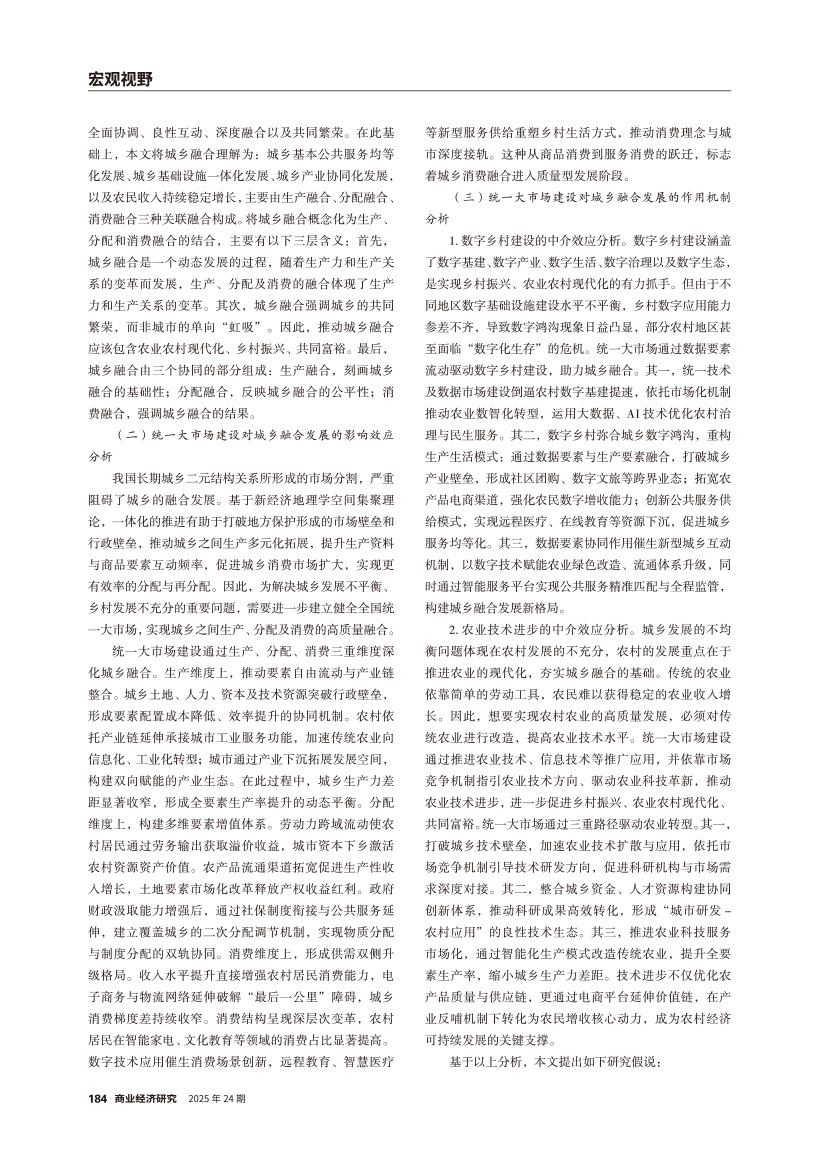 | 统一大市场建设对城乡融合发展的影响效应研究 ——基于生产、分配、消费融合视角 |