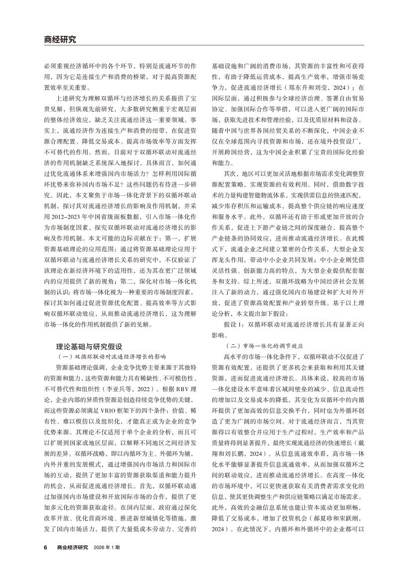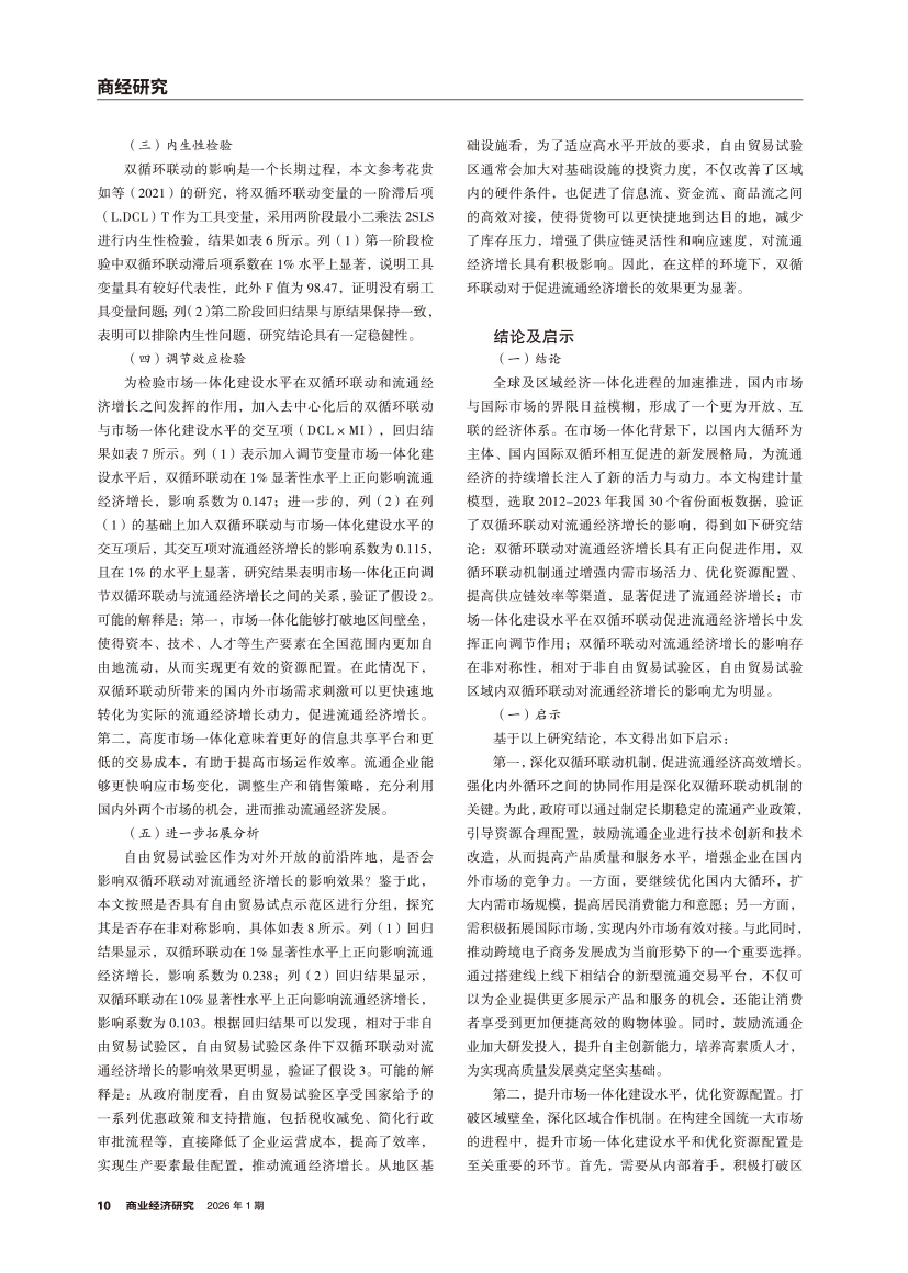 | 市场一体化背景下双循环联动对流通经济增长的影响 |