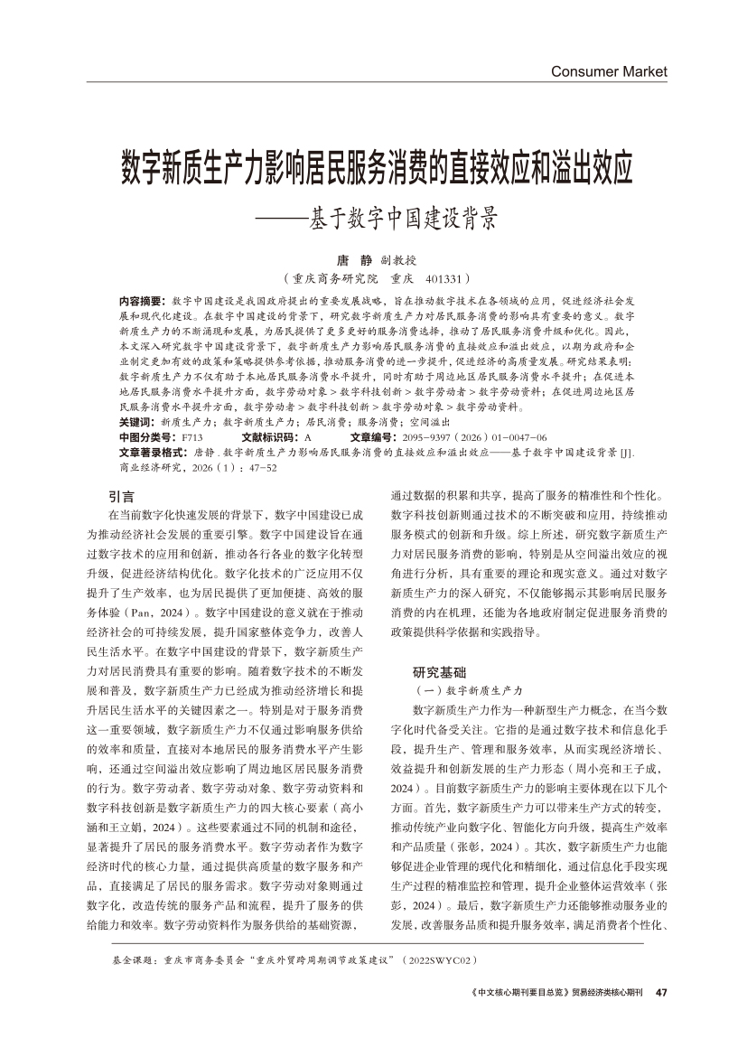 | 数字新质生产力影响居民服务消费的直接效应和溢出效应 ——基于数字中国建设背景 |