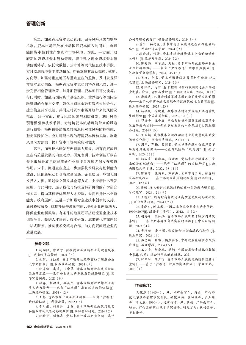 | 资本市场开放对商贸流通企业高质量发展的影响 ——基于“沪港通”交易制度的准自然试验 |