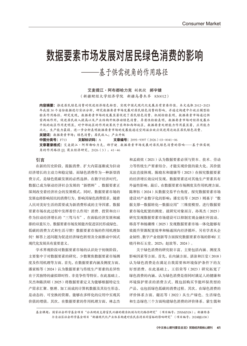 | 数据要素市场发展对居民绿色消费的影响 ——基于供需视角的作用路径 |