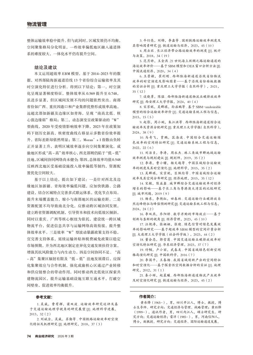 | 西部陆海新通道综合运输效率测算与时空演化分析 |