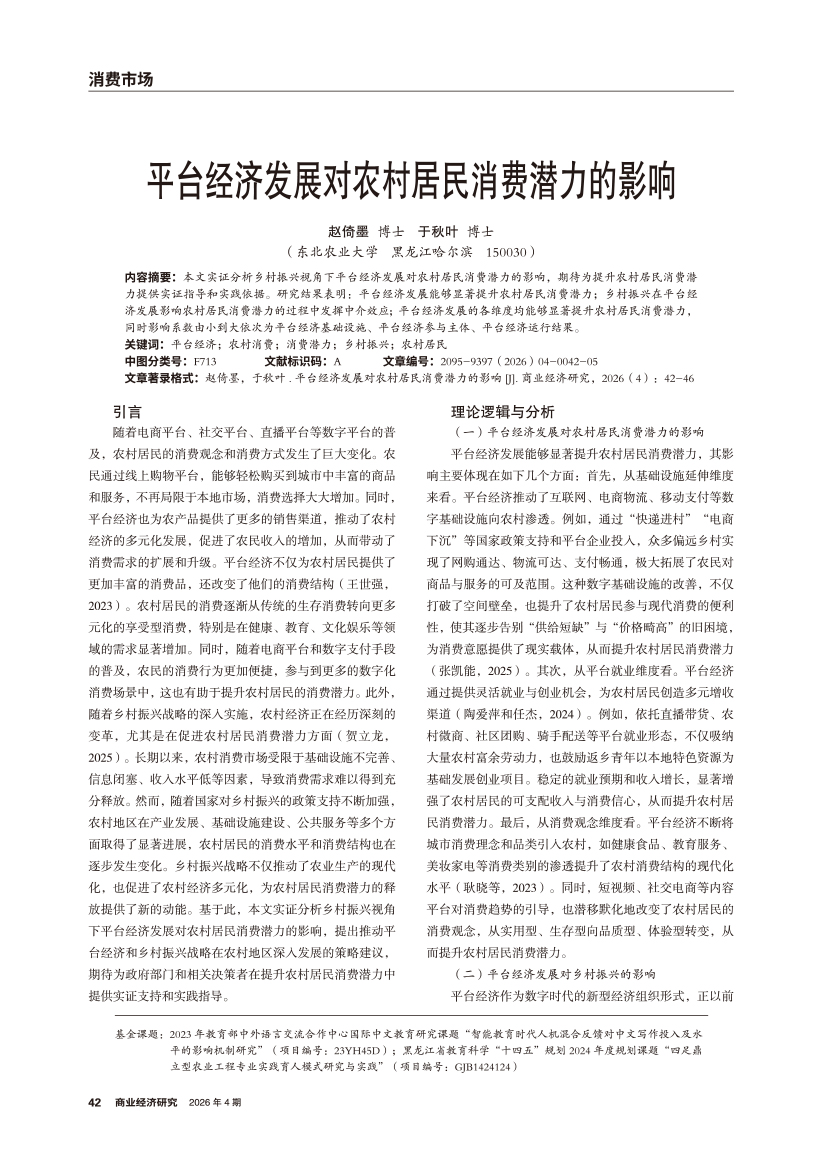 由《商业经济研究》杂志社有限责任公司出版的《商业经济研究》创刊于1982年,是原国家商业部创办的国家一级商业经济类学术期刊,是我国商贸流通领域的重要学术阵地。期刊创办30余年,为传播商业前沿理论、促进流通创新发展、推动商贸流通变革发挥了重要作用,在行业内和学界具有重要影响力。期刊多次入选“CSSCI来源核心期刊”、长期入选“《中文核心期刊要目总览》贸易经济类核心期刊”,系《中国知识资源总库社会科学期刊精品库》、《万方数据-数字化期刊群》、《中国人文社会科学期刊评价报告(AMI)》、《维普中文科技期刊数据库》等收录期刊,中国人民大学书报资料中心复印报刊资料分类转载量排名前茅期刊,2023年继续入编最新版北京大学《中文核心期刊要目总览》目录,系贸易经济类核心期刊。
