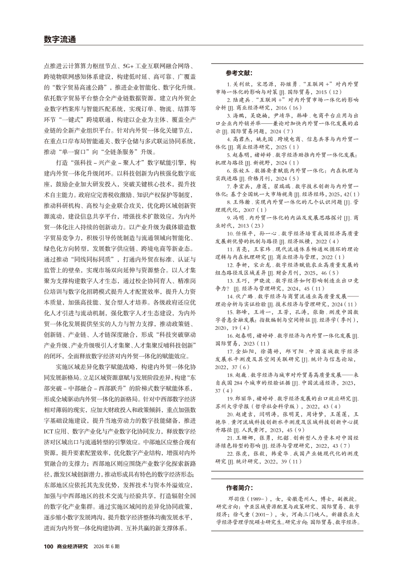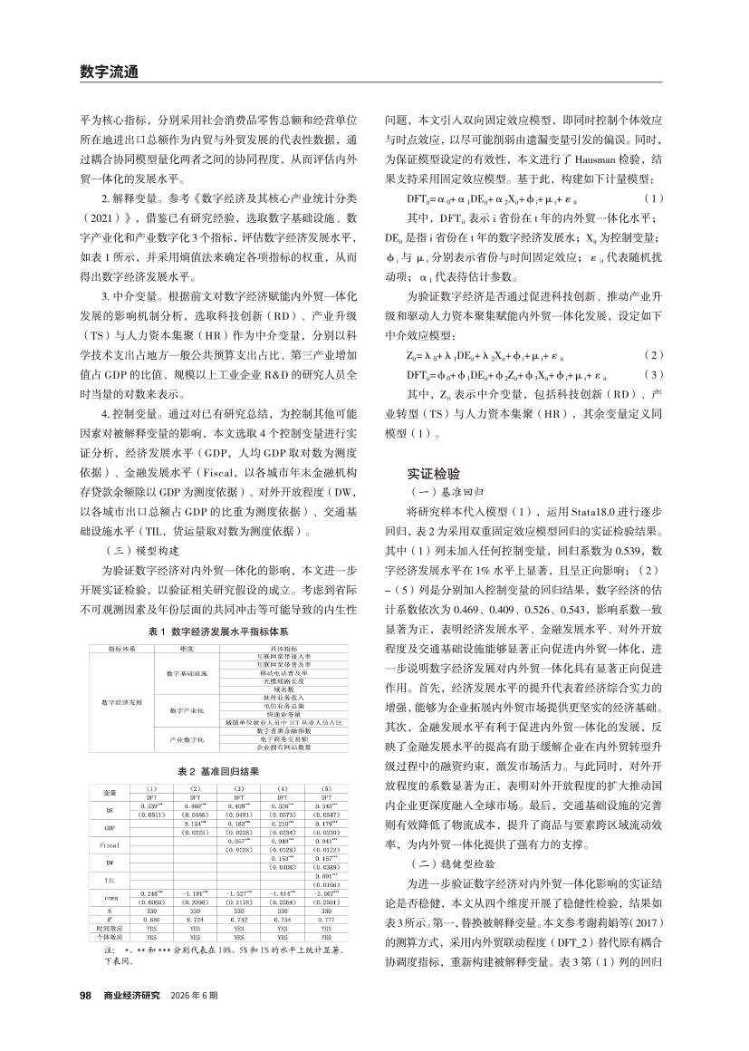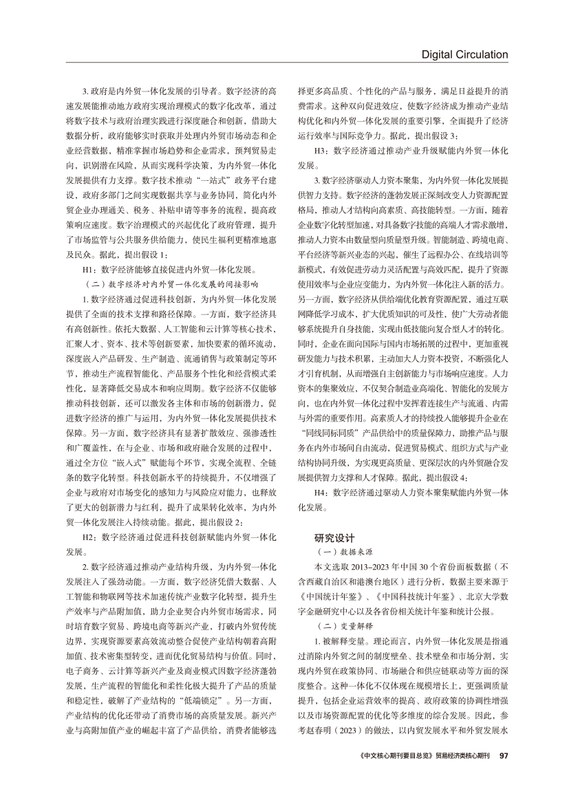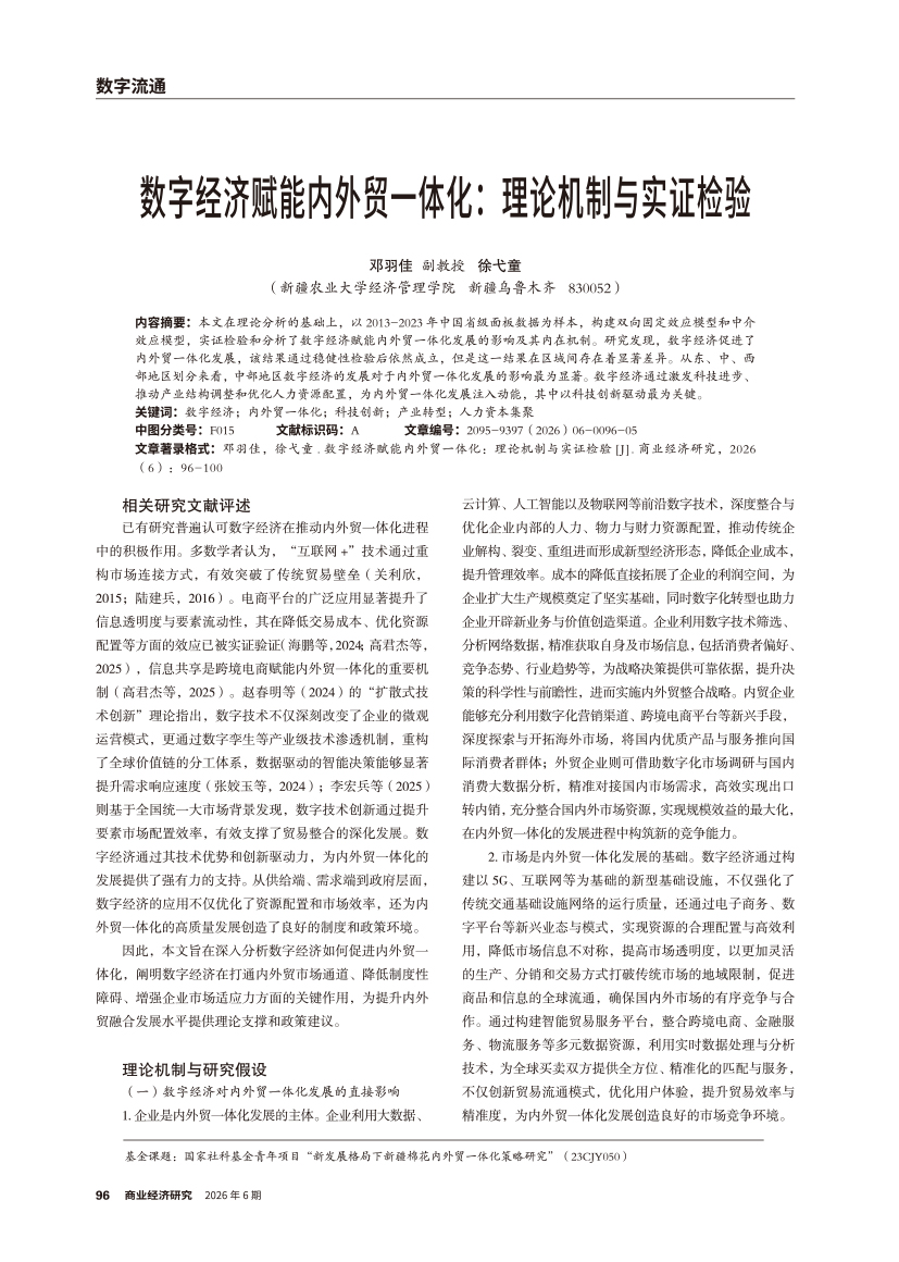 | 数字经济赋能内外贸一体化:理论机制与实证检验 |