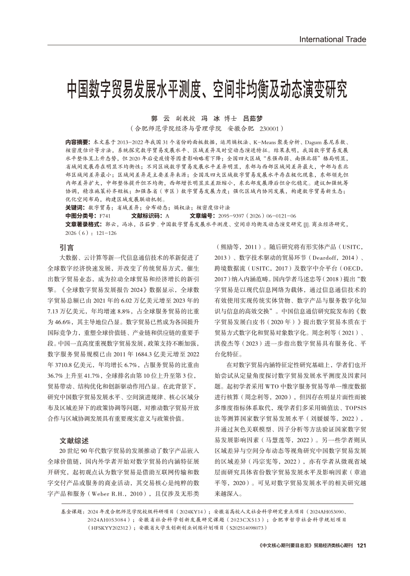 | 中国数字贸易发展水平测度、空间非均衡及动态演变研究 |