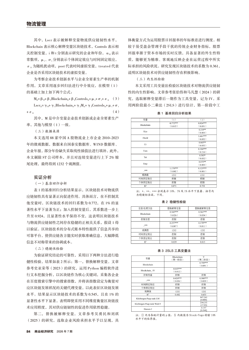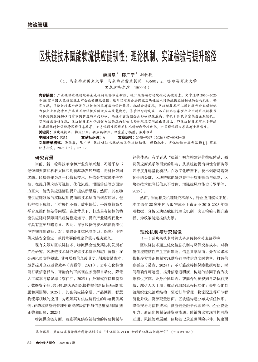 | 区块链技术赋能物流供应链韧性:理论机制、实证检验与提升路径 |