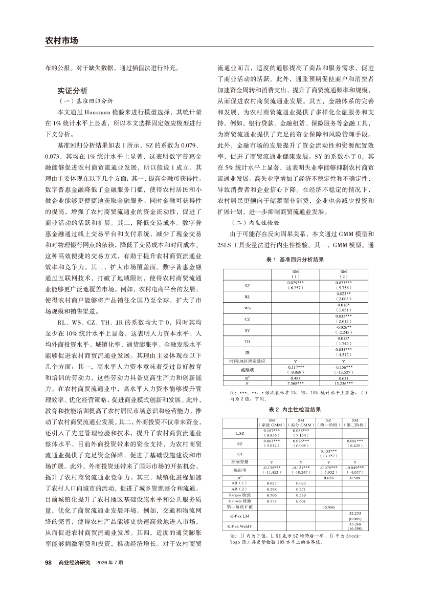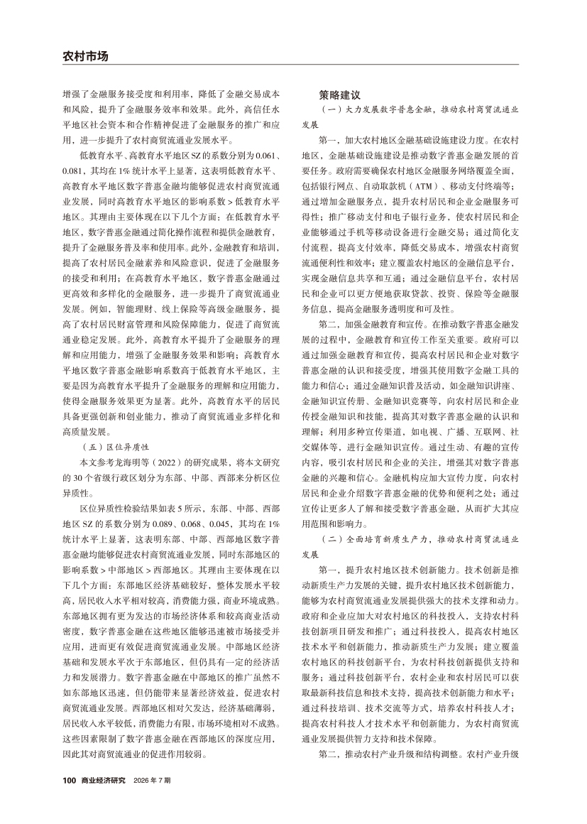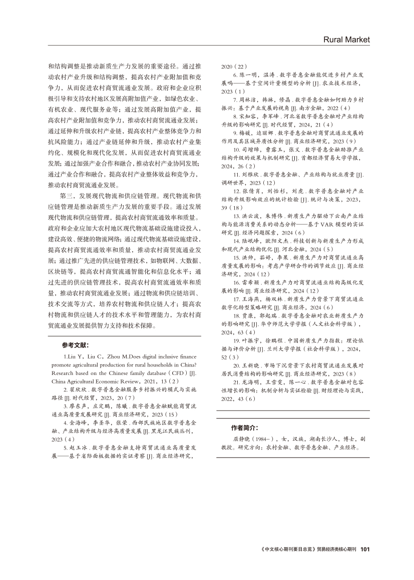 | 数字普惠金融对农村商贸流通业发展影响的实证分析 ——基于新质生产力的中介效应 |