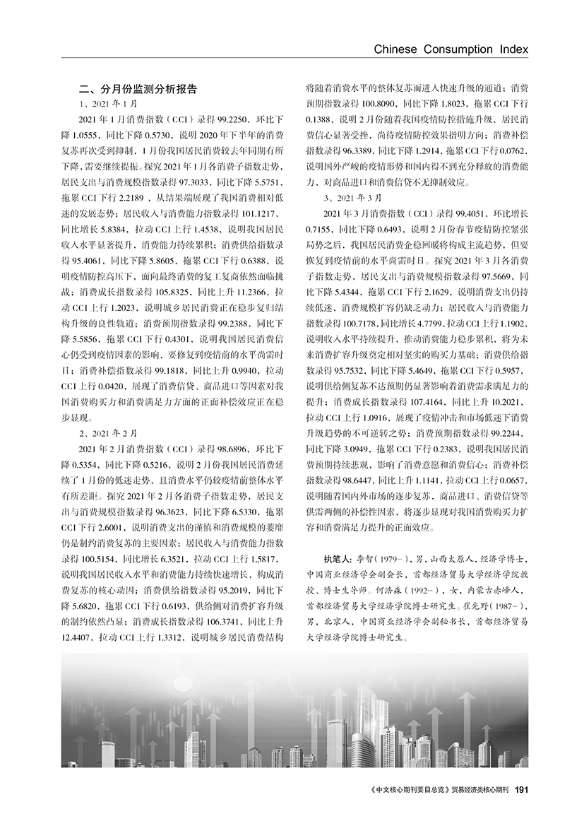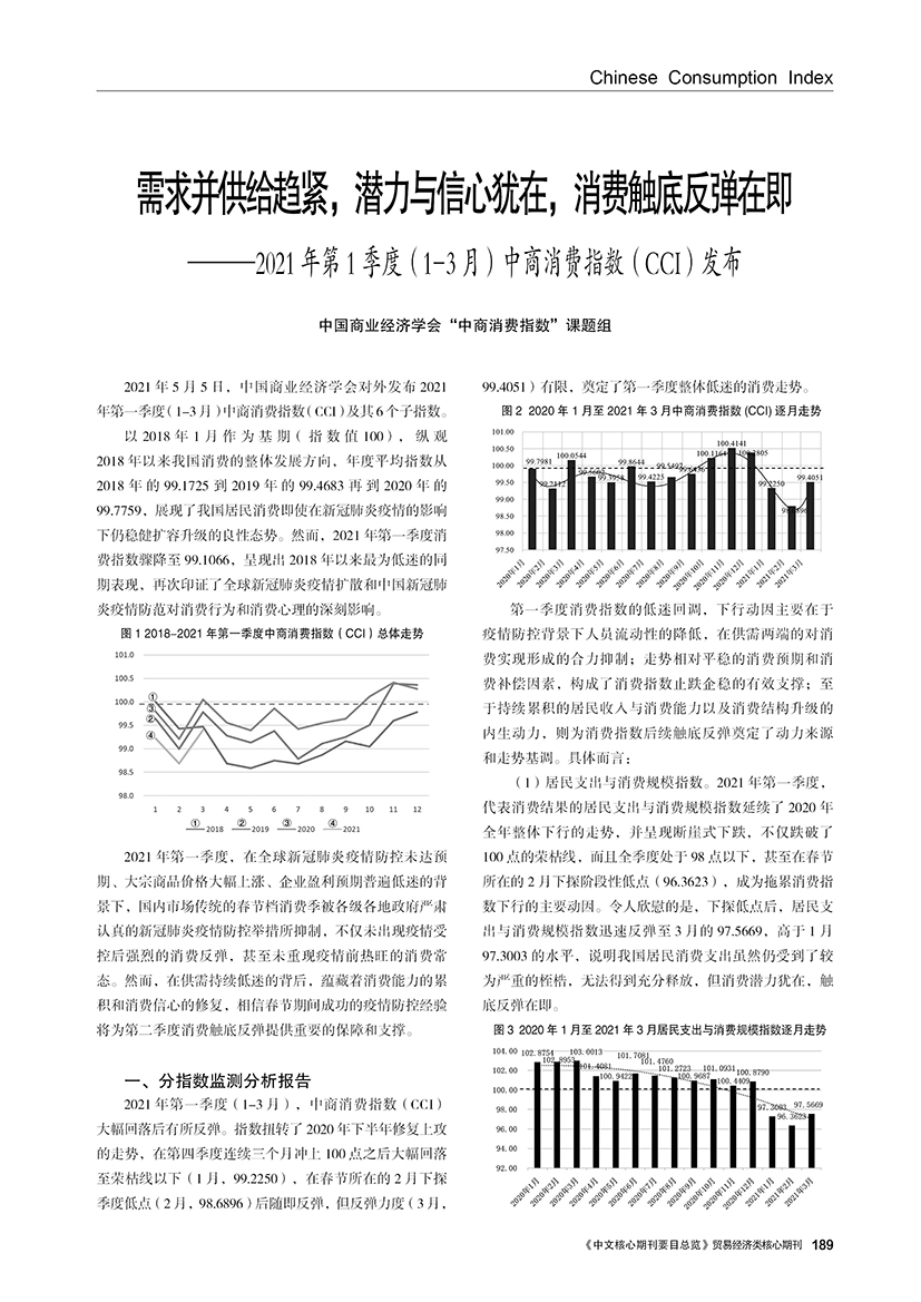 | 需求并供给趋紧,潜力与信心犹在,消费触底反弹在即 —2021年第1季度(1-3月)中商消费指数(CCI)发布 |