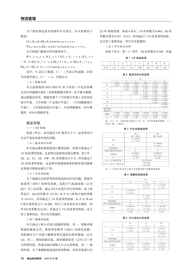 | 绿色技术创新视角下环境规制对物流业碳生产率的影响 |