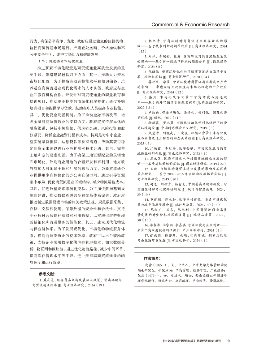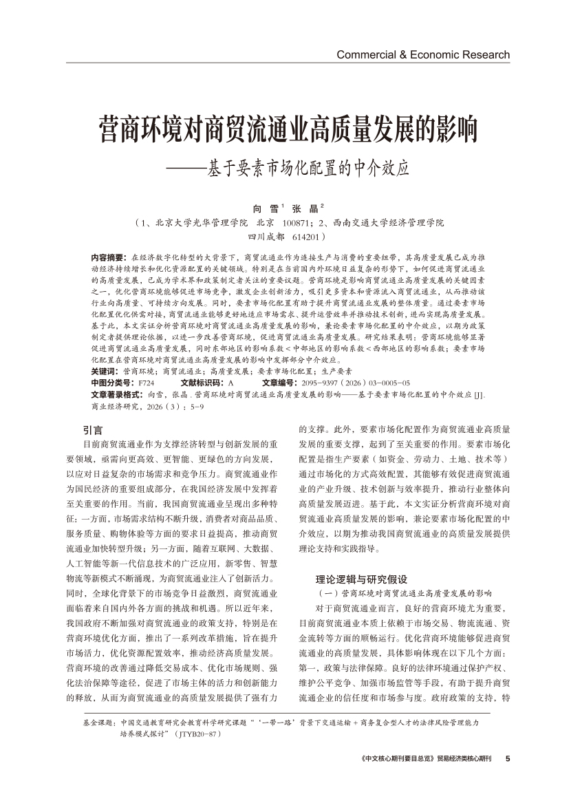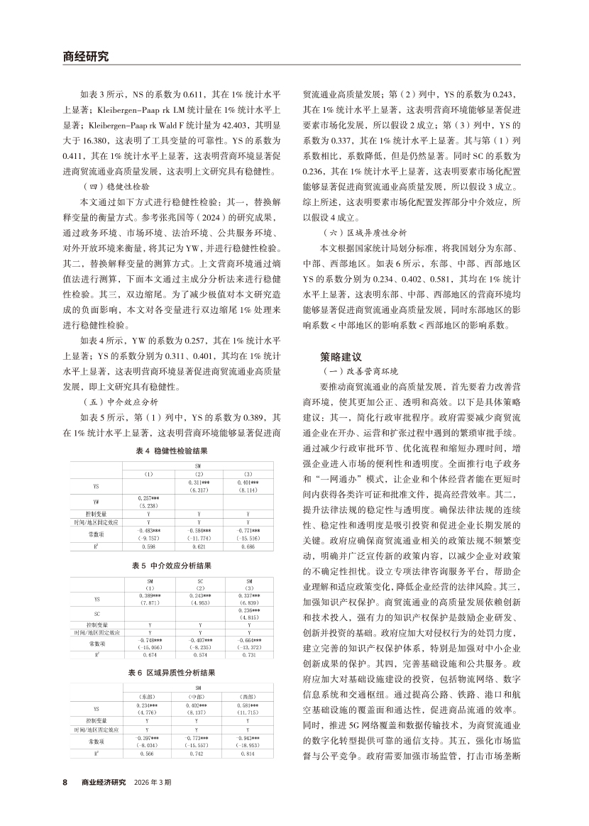 | 营商环境对商贸流通业高质量发展的影响 ——基于要素市场化配置的中介效应 |