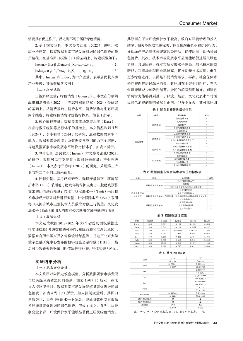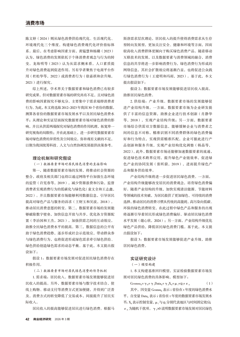| 数据要素市场发展对居民绿色消费的影响 ——基于供需视角的作用路径 |