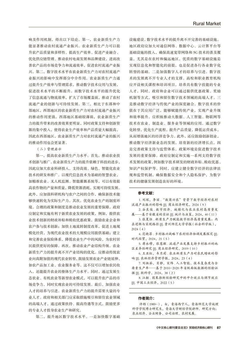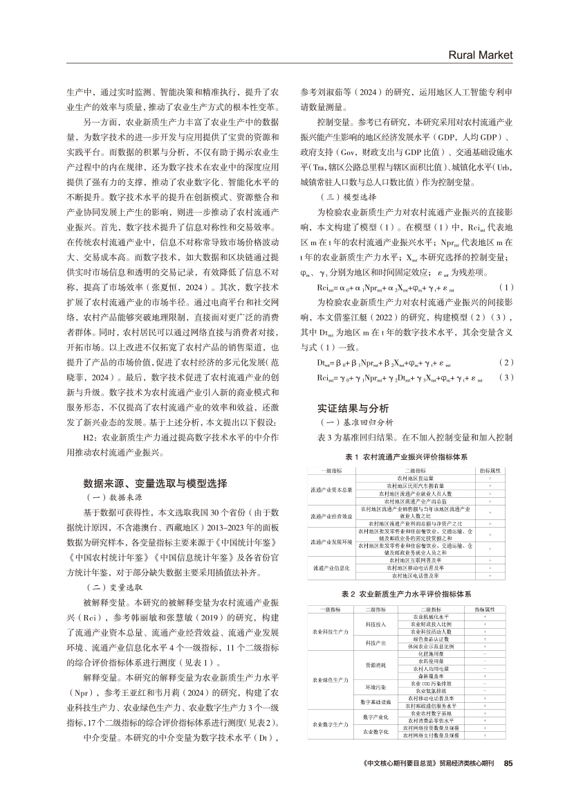 | 农业新质生产力对农村流通产业振兴的作用机制研究 |