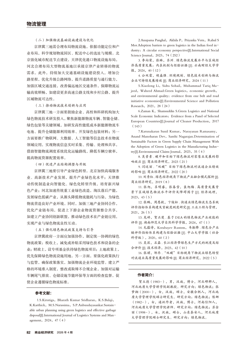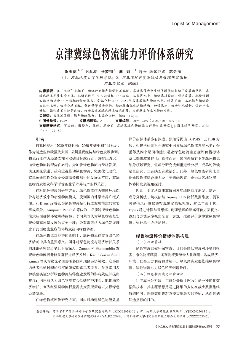 | 京津冀绿色物流能力评价体系研究 |