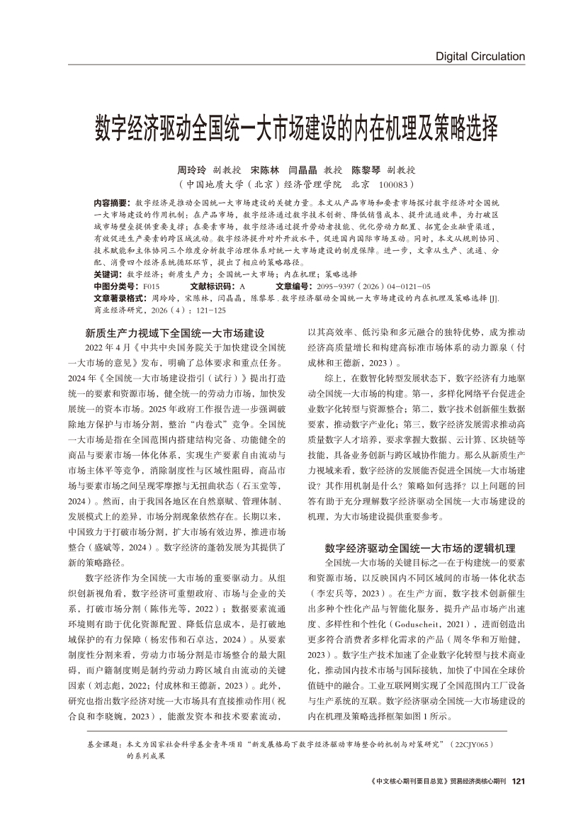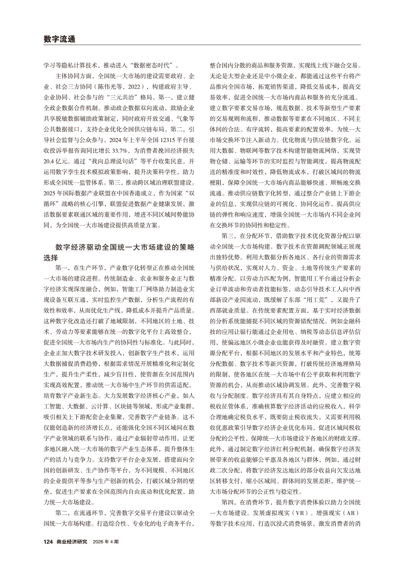 | 数字经济驱动全国统一大市场建设的内在机理及策略选择 |