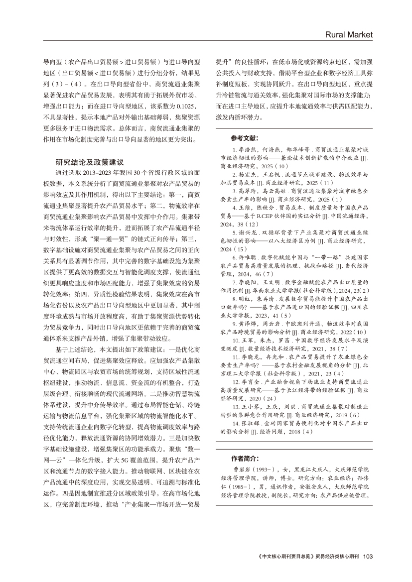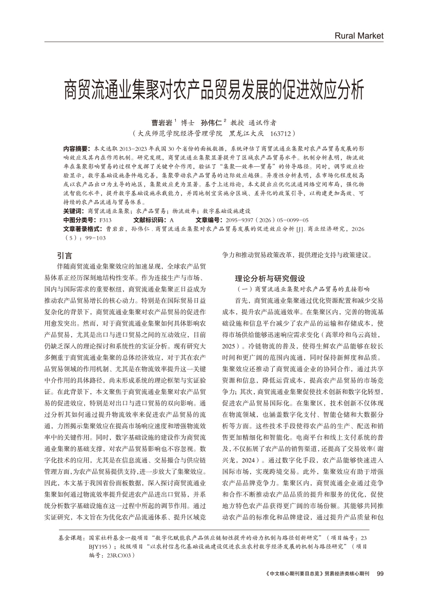 | 商贸流通业集聚对农产品贸易发展的促进效应分析 |